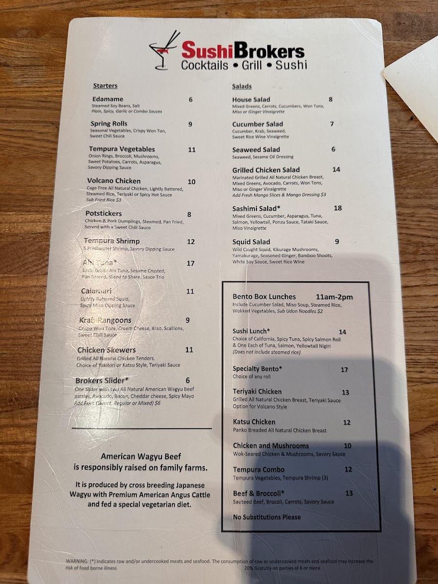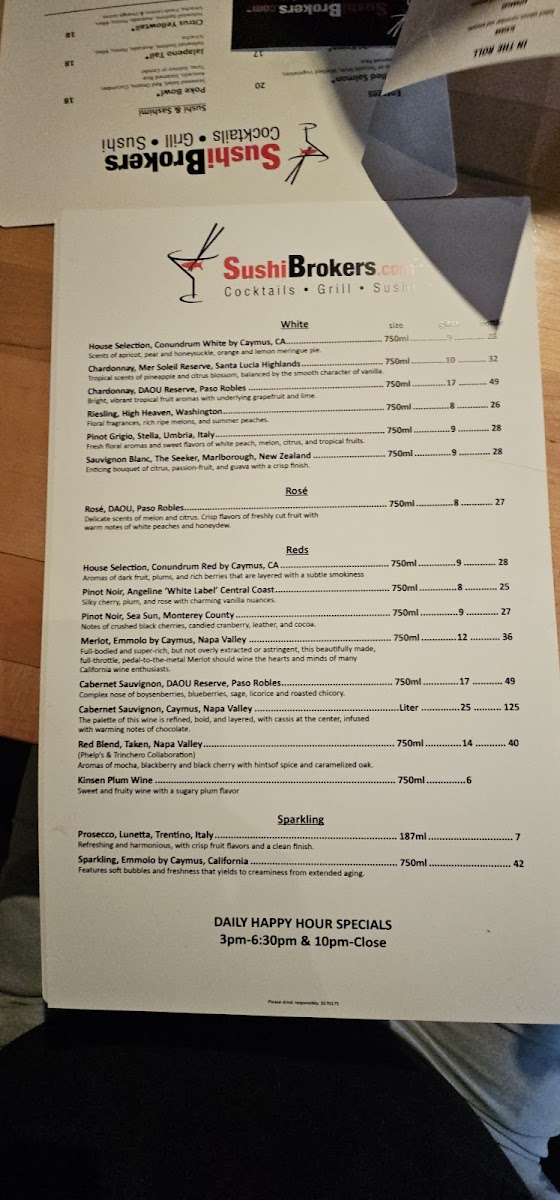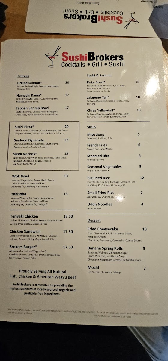 Welcome to Sushi Brokers, a distinguished sushi restaurant nestled in the heart of Scottsdale, AZ. Renowned for its commitment to quality, Sushi Brokers offers a diverse menu that will leave sushi enthusiasts craving more. Each dish showcases an artful blend of flavors, with highlights like the Lollipop Roll and the Firecracker Roll capturing the essence of fresh ingredients and creativity.
